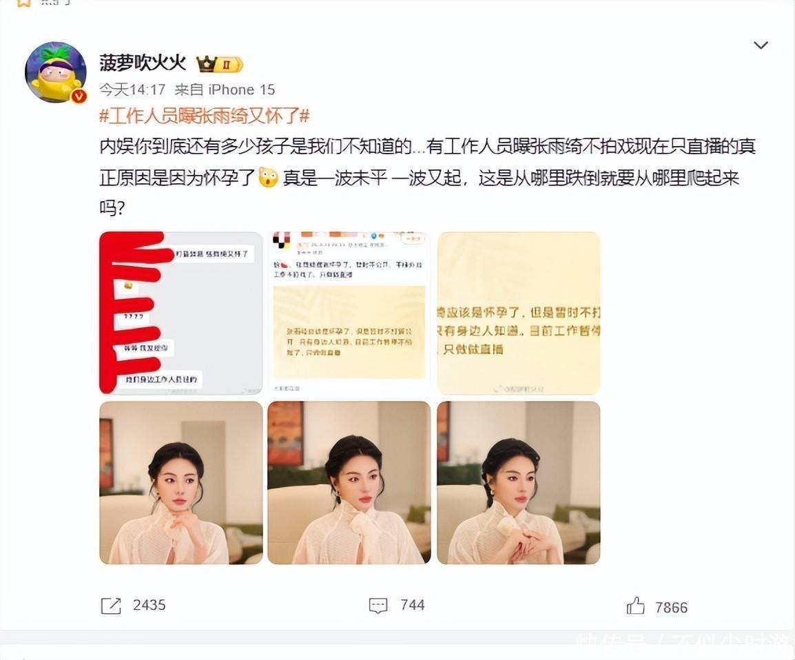 张雨绮这边刚被所谓“内部人员”传出再度怀孕的消息,称其已全面中止影视剧拍摄及户外综艺录制,仅保留直播带货这一项工作;那边昔日旧敌葛晓倩便火速现身,字字如刀,直击要害。