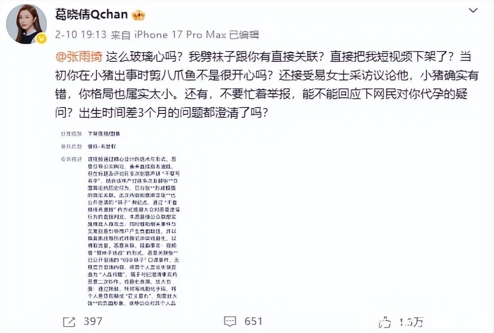 然而平静并未持续多久,葛晓倩便以雷霆之势公开回应,抛出一枚舆论核弹。